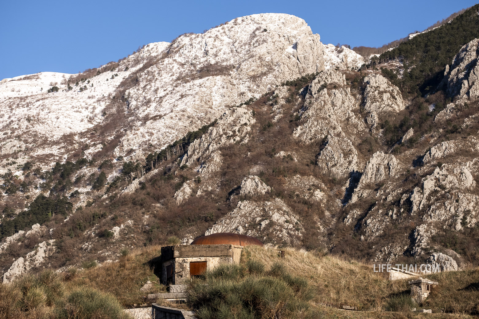 Форт Шаник (fort Sanik) находится чуть в стороне и выше Святого Андрия (около 20-30 минут хода по хребту). Многие туристы ленятся до него доходить, и зря — он сохранился гораздо лучше соседа.