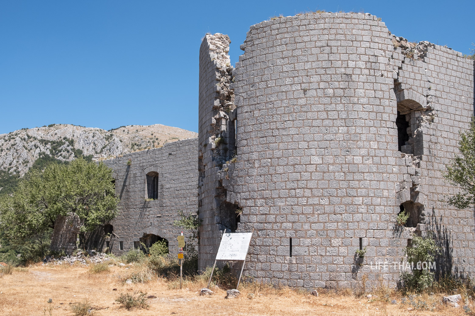 - Как добраться: Находится в поселке Браичи (Brajići). Если вы едете на машине из Будвы в сторону Цетинье или Подгорицы, вы увидите крепость справа на холме. Дорога к ней асфальтированная почти до самого конца, парковка бесплатная. Сюда удобно заехать по дороге в Липскую пещеру (маршрут в этой статье).