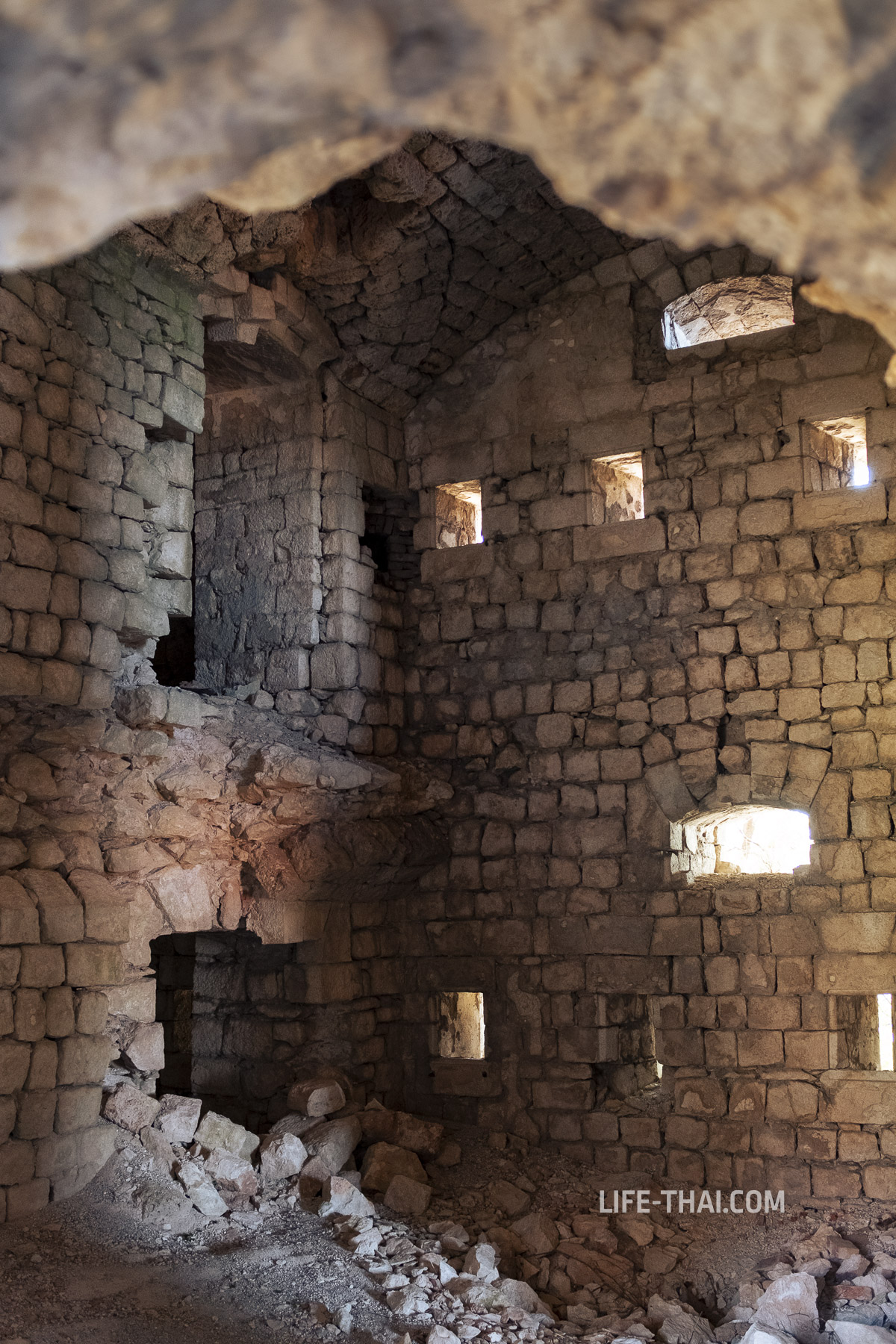 - Свободный доступ: В отличие от Мамулы, Арза — это классическая заброшка. Можно свободно подойти к стенам, обойти форт кругом по острым скалам и даже заглянуть внутрь через окна. На двери весит большой замок.