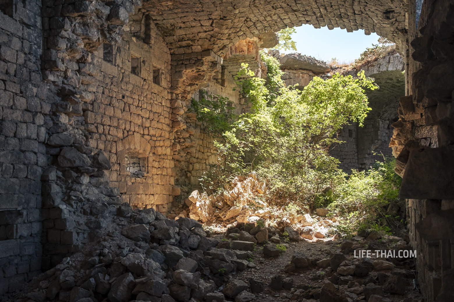 - Атмосфера «заброшки»: в отличие от вычищенной Мамулы, Кабала — это торжество дикой природы. Стены крепости оплетены плющом, а внутренние дворы заросли колючим кустарником и деревьями. Здесь тихо, безлюдно и очень аутентично.
