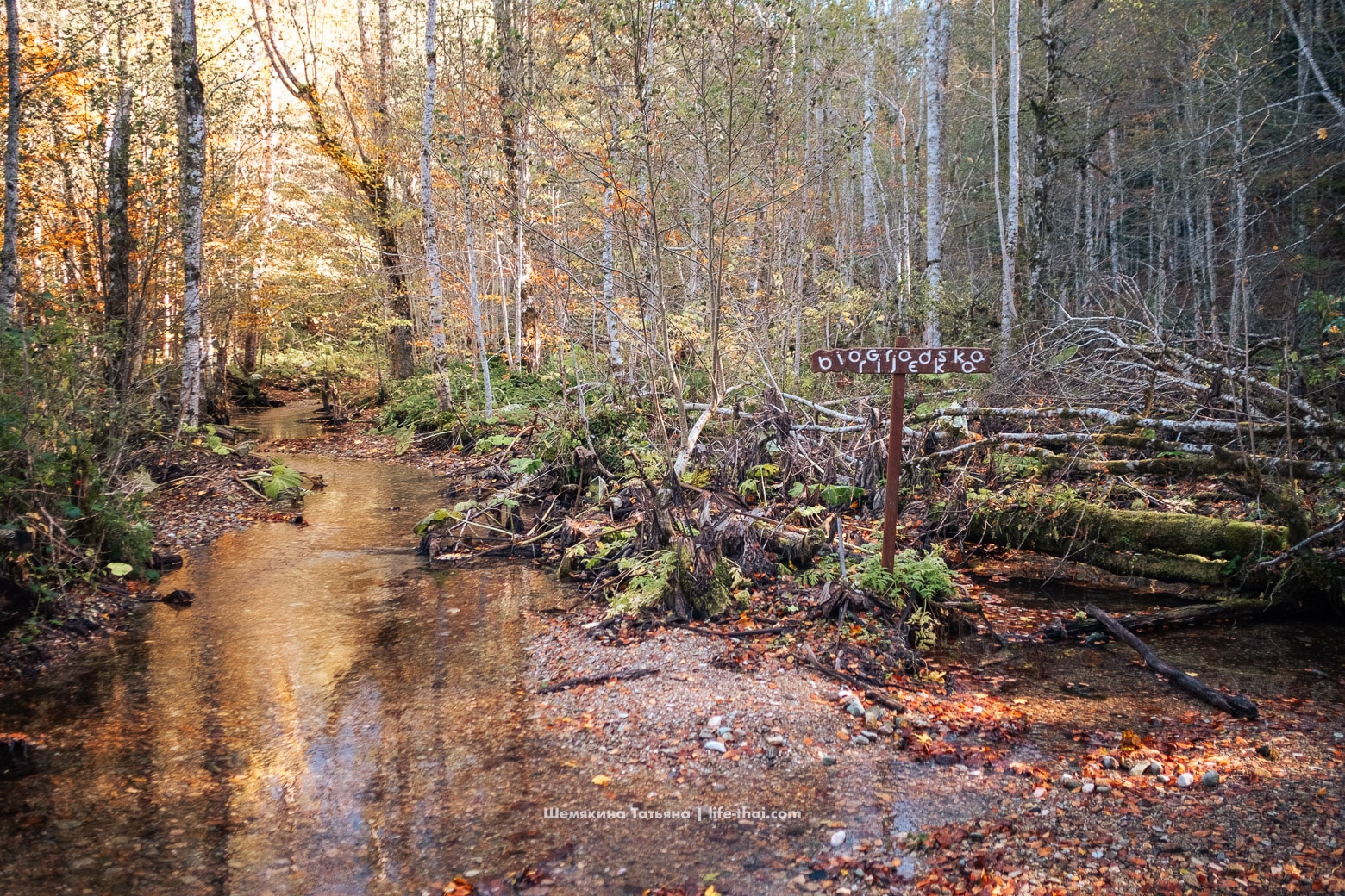 Одна из достопримечательностей тропы — Биоградская река (Biogradska rijeka), которая впадает в озеро.